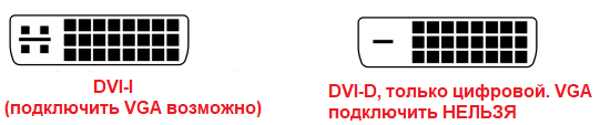 Обратите внимание на отличие DVI-D от DVI-I: