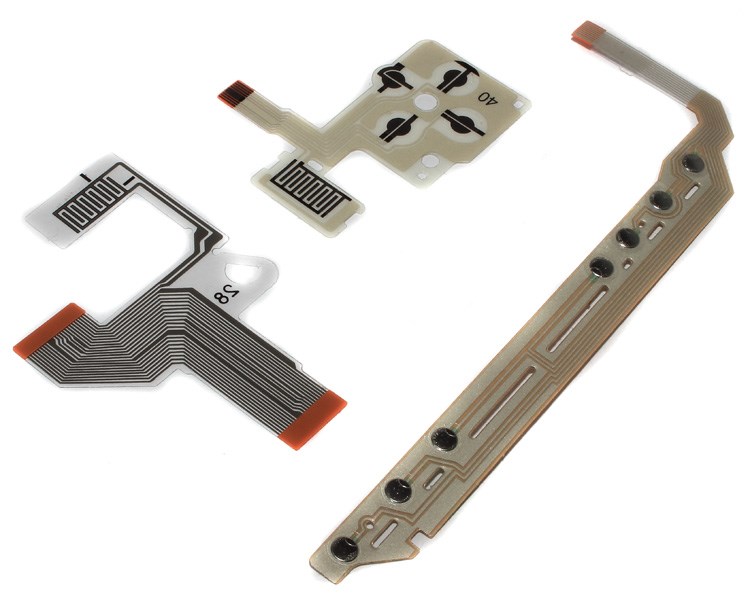 Набор из трёх контактных подложек под кнопки для игровой приставки (PlayStation Portable). Ремкомплект состоит из трёх плёнок со шлейфами - под крестовину и L, под кнопки действия и R, а также блока, отвечающего за кнопки на нижней панели - Select, Start, кнопки громкости и Home.