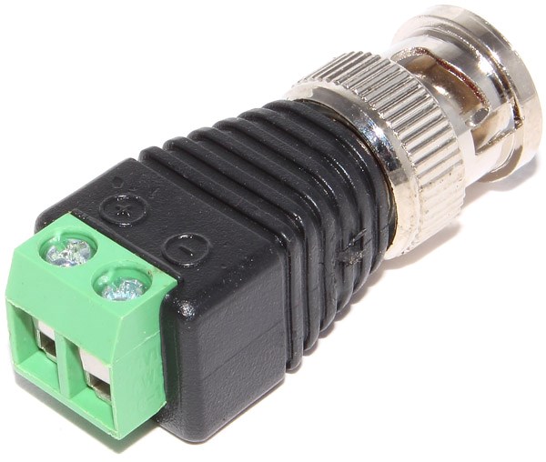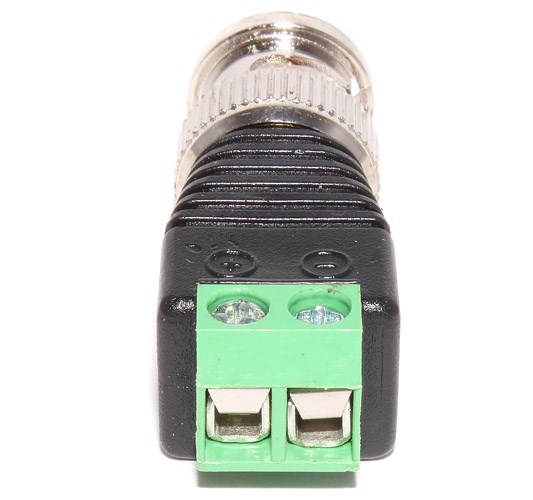 Переходник с разъёма BNC штекер на клеммную колодку удобен, если нужно подключить к разъёму кабель без использования паяльника. Кабель зачищается, устанавливается в колодку и зажимается винтами.