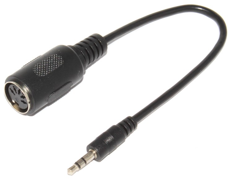 Переходник DIN 5 Pin (гнездо) - Mini jack 3.5 мм с распайкой типа "Kenwood". Во времена активного использования разъёмов DIN была война стандартов, и один из стандартов распайки данного разъёма применялся с устройствами Kenwood, а также некоторыми другими. В частности, такую же распайку использовали в некоторых устройствах компании JVC и Akai.