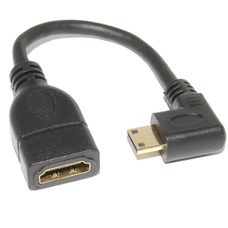 Переходник угловой Mini HDMI (левый) "папа" 90 градусов - HDMI "мама". Позолоченные разъёмы, небольшие габариты. Используется для подключения видеорегистраторов, видеокамер и тому подобного оборудования.