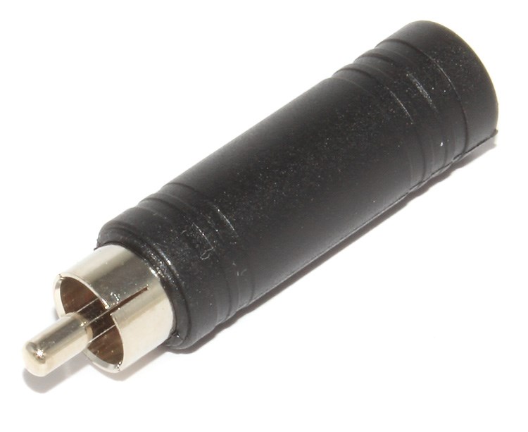 Переходник с разъёма RCA (он же "Тюльпан") на гнездо Jack 6.35 мм, в пластиковом корпусе. Применяется для передачи звука в профессиональной и любительской технике - гитарах, синтезаторах, акустических мониторах и т.д.