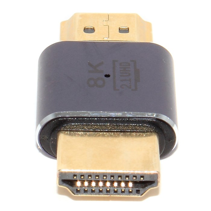 Переходник для соединения проводов HDMI с высокой чёткостью передачи изображения UHD - до 8K (7680x4320). Полное соответствие стандарту HDMI 2.1. Тип разъёмов - "штекер" - "штекер", или т.н. (m)-(m).