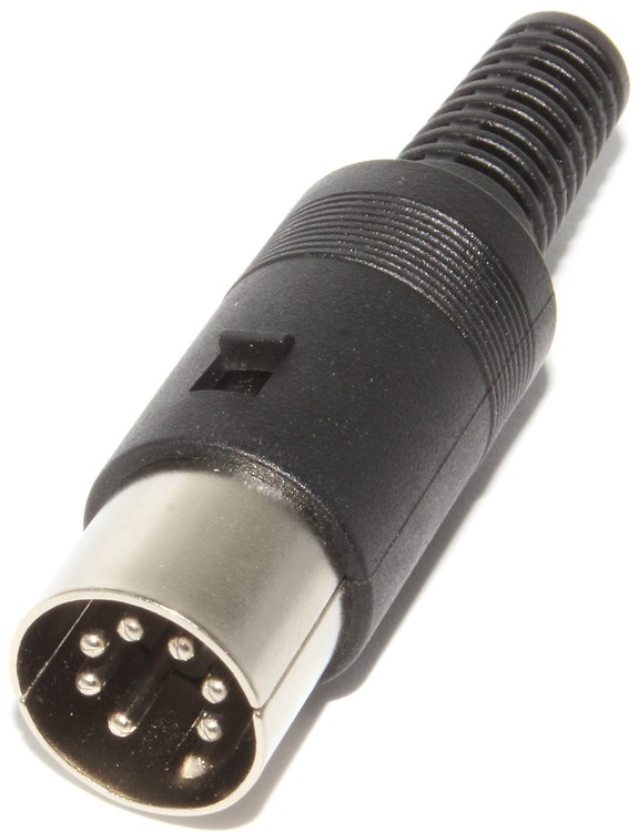 Коннектор с семью контактами DIN 7 Pin. Контактная группа расположена на одной окружности. Соответствует Стандарту DIN 41524, описывающему всё семейство разъёмов такого типа. Разъём разборный, для крепления провода используется пайка.
