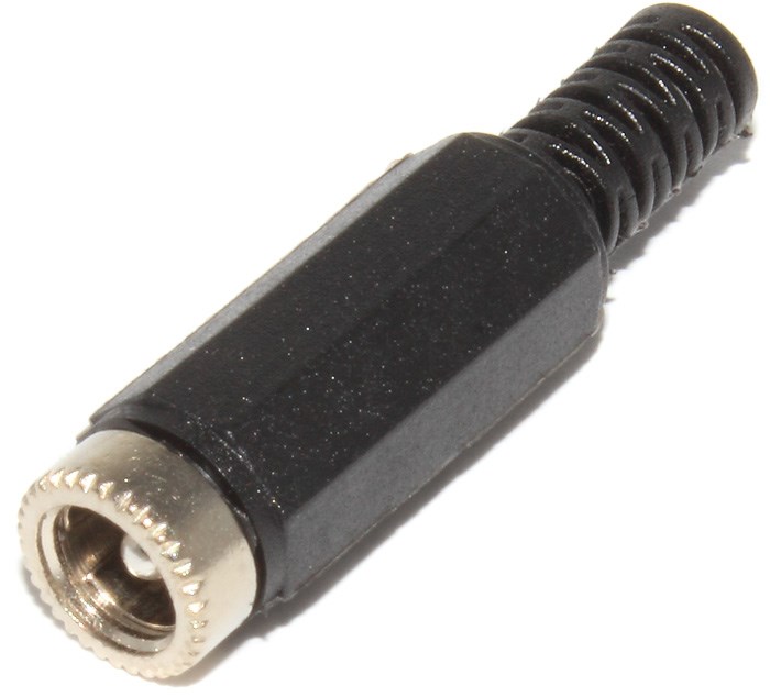 Разъём питания с размерами 5.5 x 2.5 мм и креплением на кабель. Корпус пластиковый, разборный. Внутри два вывода, крепление провода - при помощи пайки.