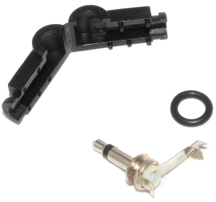 Разъём легко разбирается - нужно просто снять кольцо, а затем раскрыть корпус, разделяя его со стороны фиксатора. Это даст доступ к контактной группе, состоящей из двух выводов. Короткий вывод это канал, а длинный - "земля". У длинного вывода есть "крылья", которые нужно обжать вокруг провода с изоляцией и зафиксировать его.